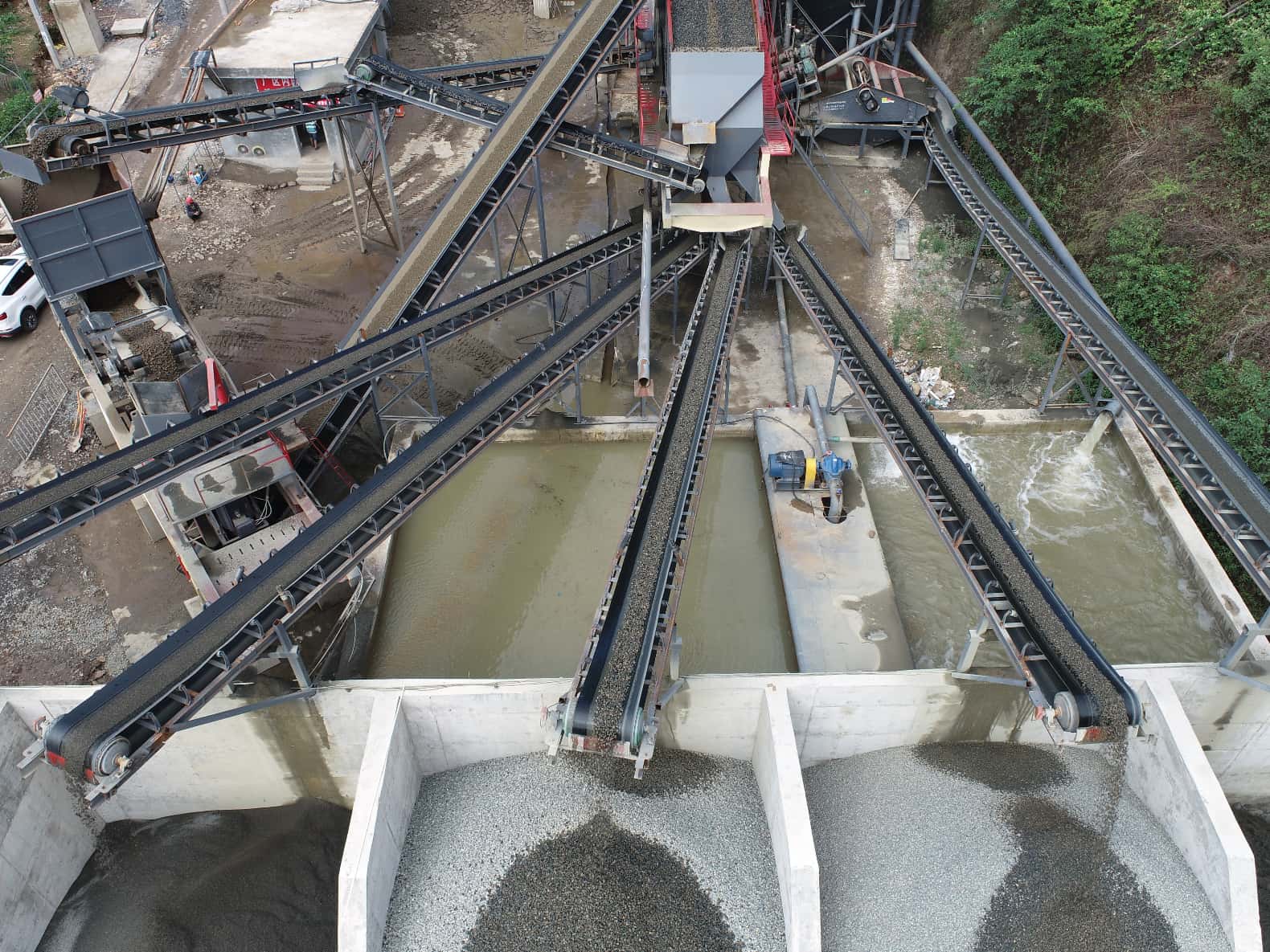 加工物料:山石产量:300吨/小时成品:42mm以下砂石设备配置: PEV750*1060 破碎(GZD1142型振动给料机)+反击破+制砂机+2台振动筛1860+洗沙机+尾砂回收机)生产情况:生产现...